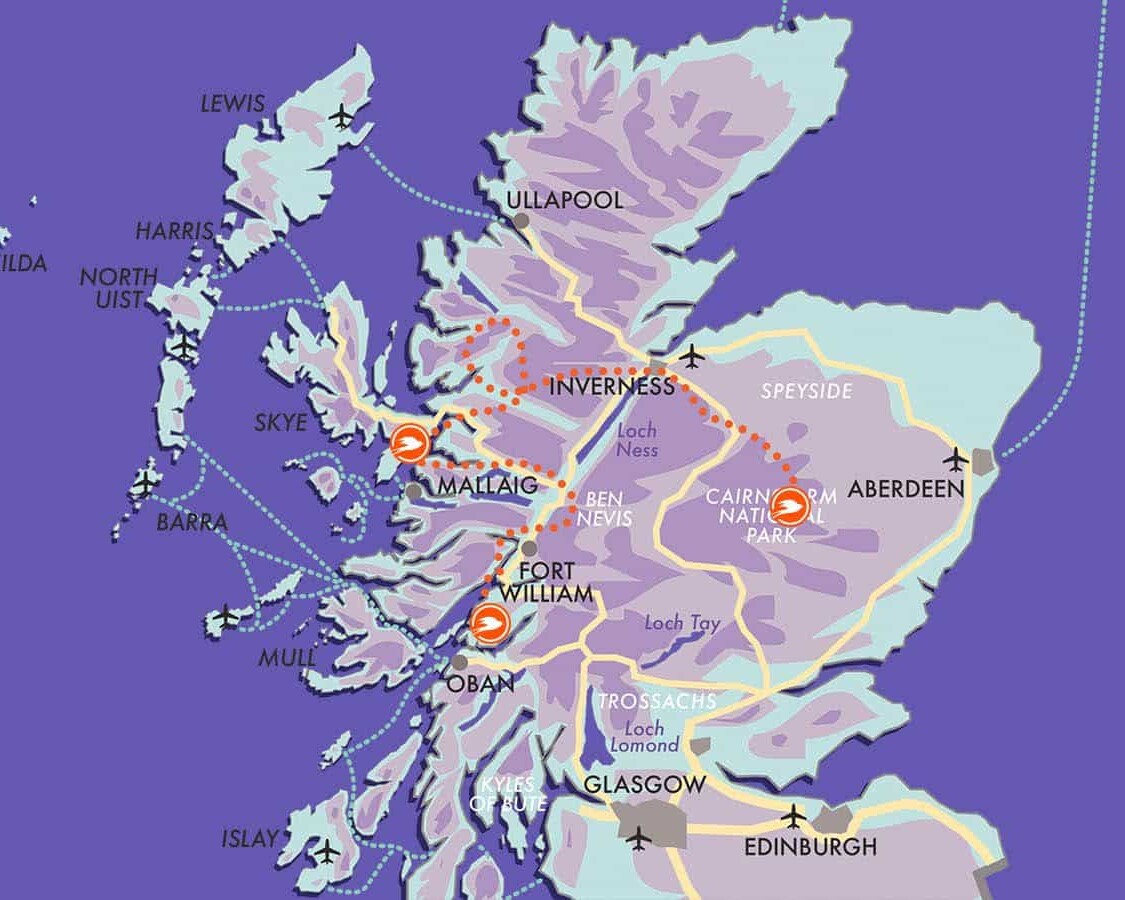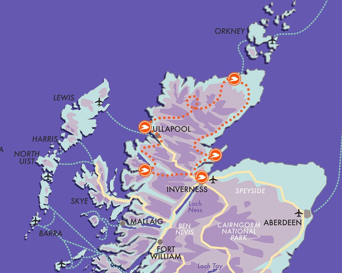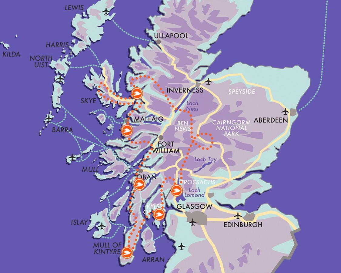 Take in the very best of Scotland through the drama of Argyllshire and Skye, the wilderness of interior Ross-shire and the beauty of the eastern Highlands.