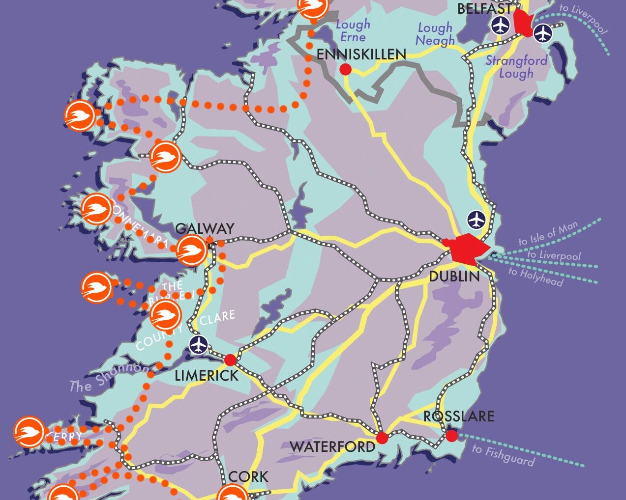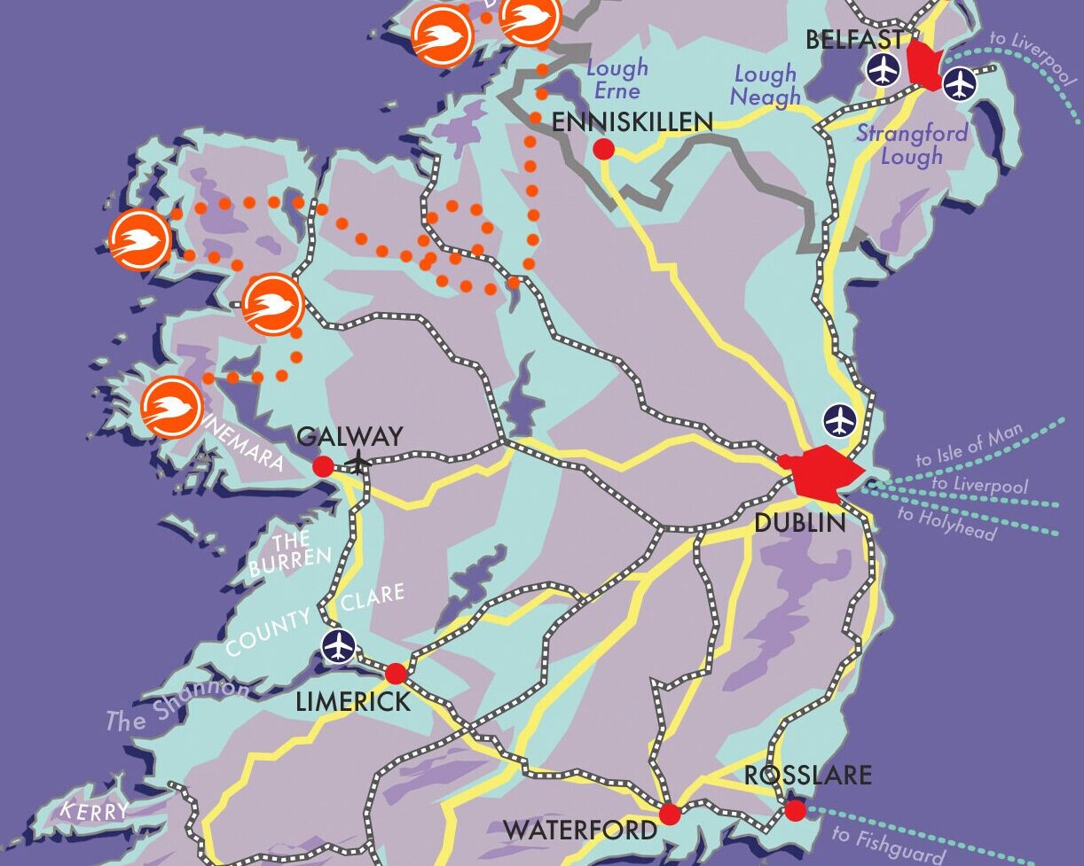 Drive the full length of Ireland, from the Wild Atlantic West Coast and islands to the geological splendour of the Giant’s Causeway in the North.