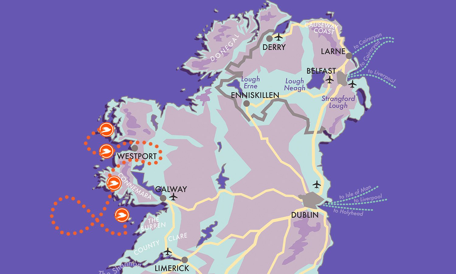 Each unique destination on this nine-night self-drive exploration boasts its own distinctive character. Overnight stays on the islands of Achill and Inishbofin, as well as colourful Westport and historic Connemara, with day-trips to tranquil Clare Island, and to Inis Mhor by thrilling small-craft flight, make this holiday a truly one-off experience, memories of which will live with you forever.